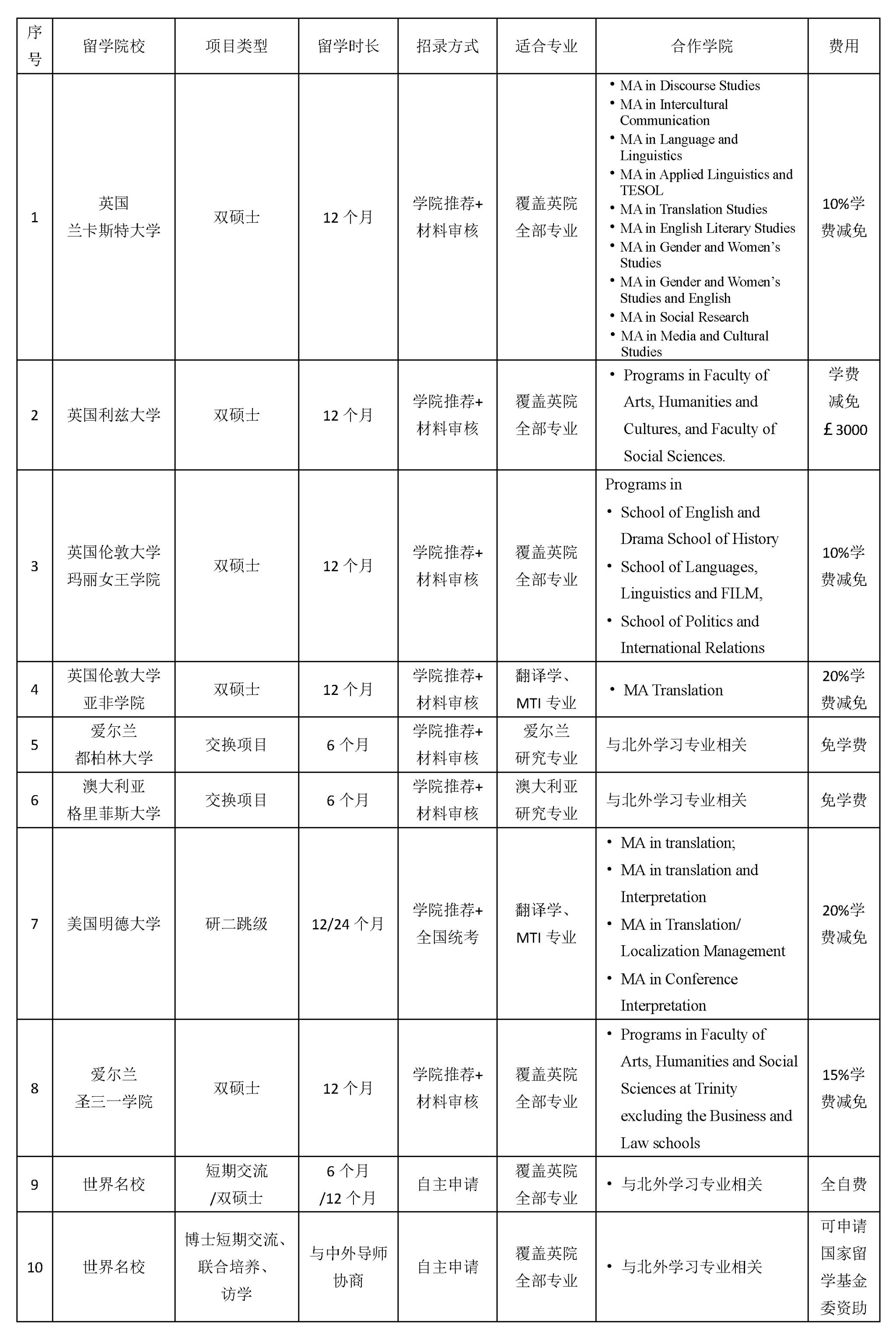 pg娱乐电子游戏官网入口研究生(含硕士生和博士生)短期留学项目旨在培养国际化复合型人才,为学生提供赴世界名校交流学习的机会。硕士生出境交流时间须在完成一年学习之后根据具体情况确定,博士生须与导师商量后确定。短期留学项目注重夯实学生专业功底,提升学生的专业素养、跨学科能力及国际竞争力,助力学生全面发展。学生在外就读专业与北外在读专业相关,所修学分得到认可,可计入毕业学分。各项目简要介绍请参见下表。