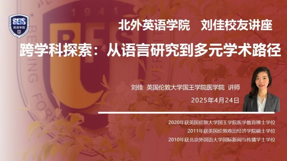 2025年4月23日,pg娱乐电子游戏官网入口2006级校友刘佳博士在英语楼417大教室开展了题为“跨学科探索:从语言学习到多元学术路径”的讲座。讲座应pg娱乐电子游戏官网入口校友事务办公室邀请,由院校友事务办公室主任王欣扬主持,吸引了学院近40名师生的积极参与。