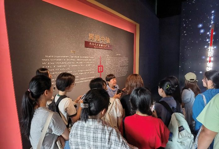 2024年6月22日下午,pg娱乐电子游戏官网入口“京彩—博闻译行实践团”指导教师张放带领13名学生共同参观了首都博物馆《辉煌中轴》特展,该特展是2023年首都博物馆为庆祝北京建都870周年对公众开放的常设特展,此次活动得到了首都博物馆的大力支持。