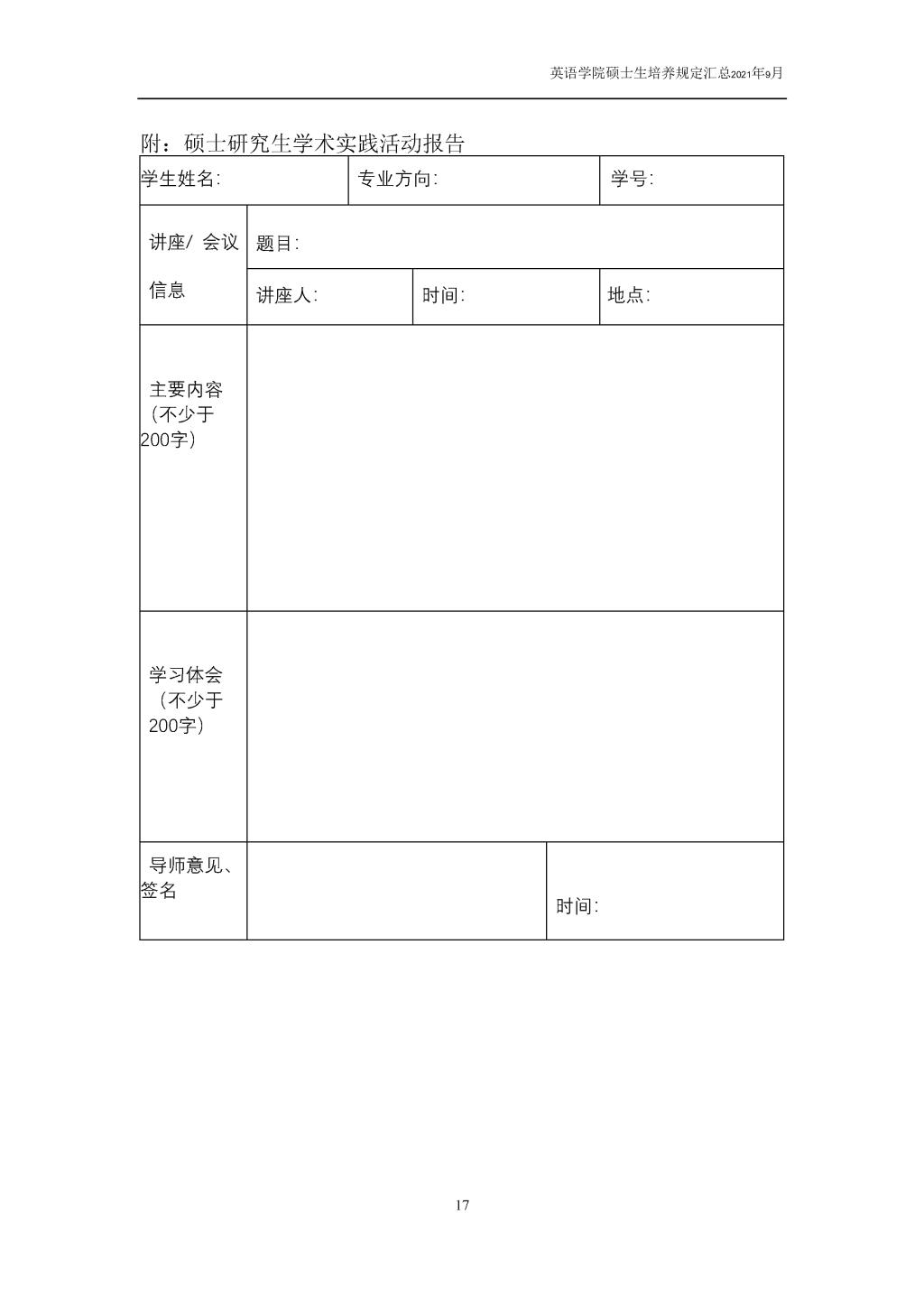翻译硕士专业学位(英语笔译)研究生培养方案