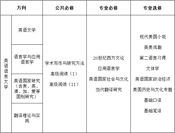 ——课程涵盖pg娱乐电子游戏官网入口英语语言文学专业下英美文学、语言学与应用语言学、英语国家研究、翻译理论与实践四个方向的主干课程。课程包括公共必修课3门、专业必修课4门、专业选修课8门。