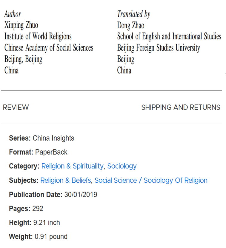 《中国人的宗教信仰》(Religious Faith of the Chinese)从世界文化史的整体发展角度,解读了中国宗教信仰与世界宗教信仰的发展这一“你中有我,我中有你”的互动过程,并指出在这一过程中,中国宗教信仰所展示的山容海纳、厚德载物、和合圆融的独特精神品质,实现学术性、思想性与致用性的结合。该书以文化哲学的意蕴和文化历史的视阈来体悟和诠释中国人的信仰及宗教理解,探究宗教的社会、政治、文化及精神意义,追溯中国人宗教信仰的历史发展和范式转变,分析中国本土宗教的特色和世界宗教在华本土化的历程,描述多种宗教在中国社会及中国人的精神生活中的多元共存、多元通和,展示中国宗教文化的绚丽多姿、异彩纷呈,反映当代中国社会宗教的真实存在,并进而说明中国宗教的现实社会文化作用。
