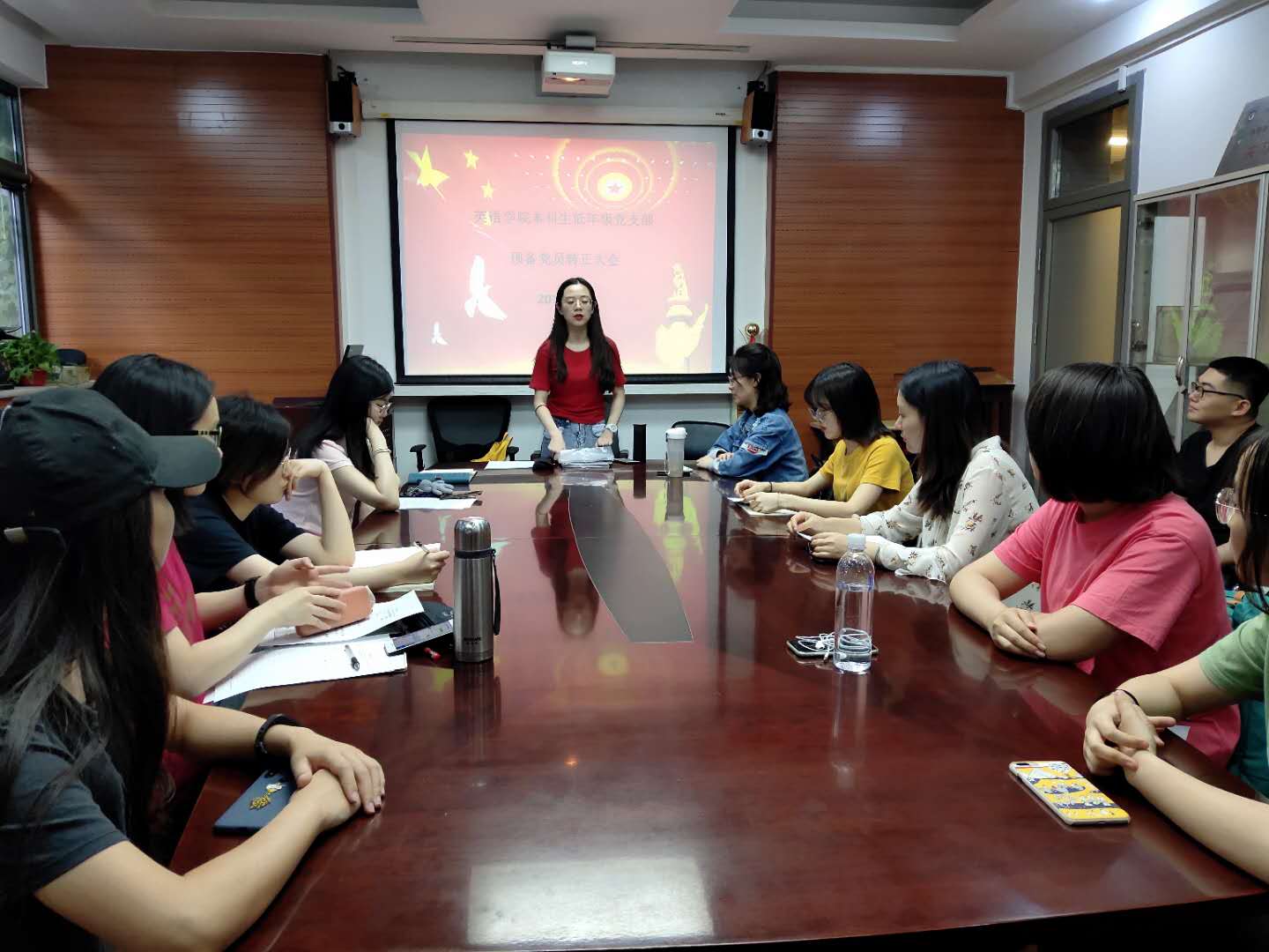 2019年5月31日晚,本科生低年级党支部在学院115会议室召开了预备党员转正大会,会议由党支部书记罗振令主持,支部副书记、党员及预备党员参加了该次会议。会议包括三名预备党员(李雨洁、李佳琦、杨清元)的转正事宜、“红色1+1”活动策划及安排、学习强国App的学习方法和学习心得分享、组织观看党章电视辅导教程并围绕“党员肩负的责任”展开探讨等内容。