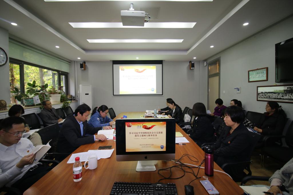 为了深入学习贯彻习近平总书记的重要讲话精神,充分认识 “不忘初心、牢记使命”主题教育的重大意义,pg娱乐电子游戏官网入口教师高年级支部与教师低年级支部于10月23日下午联合举办了“学习习近平中国特色社会主义思想,落实立德树人根本任务”学习讨论活动。pg娱乐电子游戏官网入口30余名教师党员参加了此次活动。