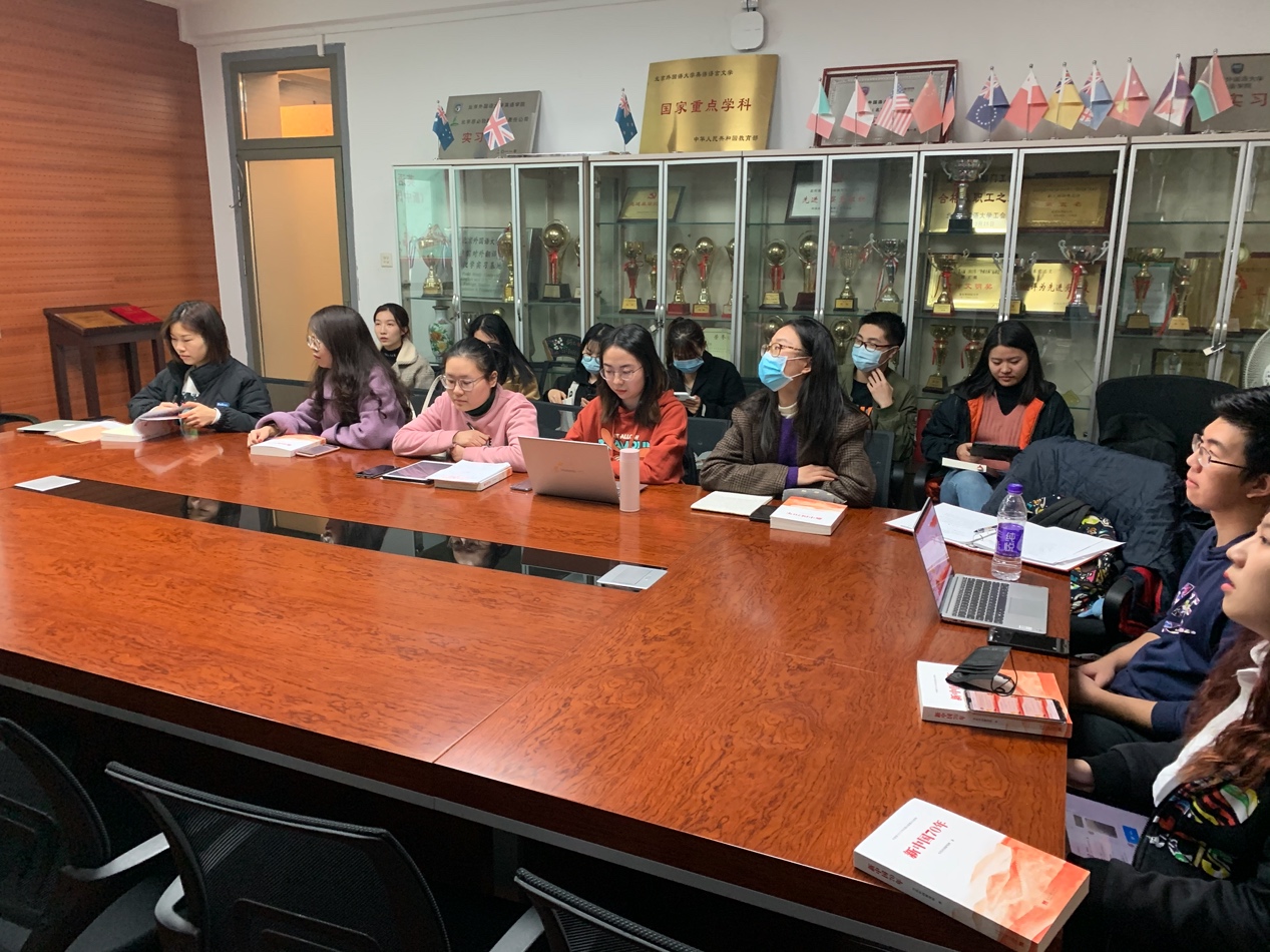 2020年11月11日,pg娱乐电子游戏官网入口党总支在pg娱乐电子游戏官网入口115会议室组织开展了《新中国70年》读书会,来自pg娱乐电子游戏官网入口本科生支部、研究生语言学支部、研究生文学支部、研究生翻译学支部、研究生MTI笔译支部、研究生MTI口译支部、研究生国别研究一支部、研究生国别研究二支部的23名党员同志参与了本次读书交流活动。读书会由本科生党支部书记孙琳同志主持。