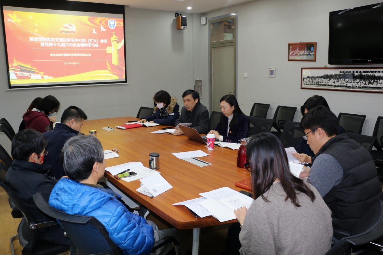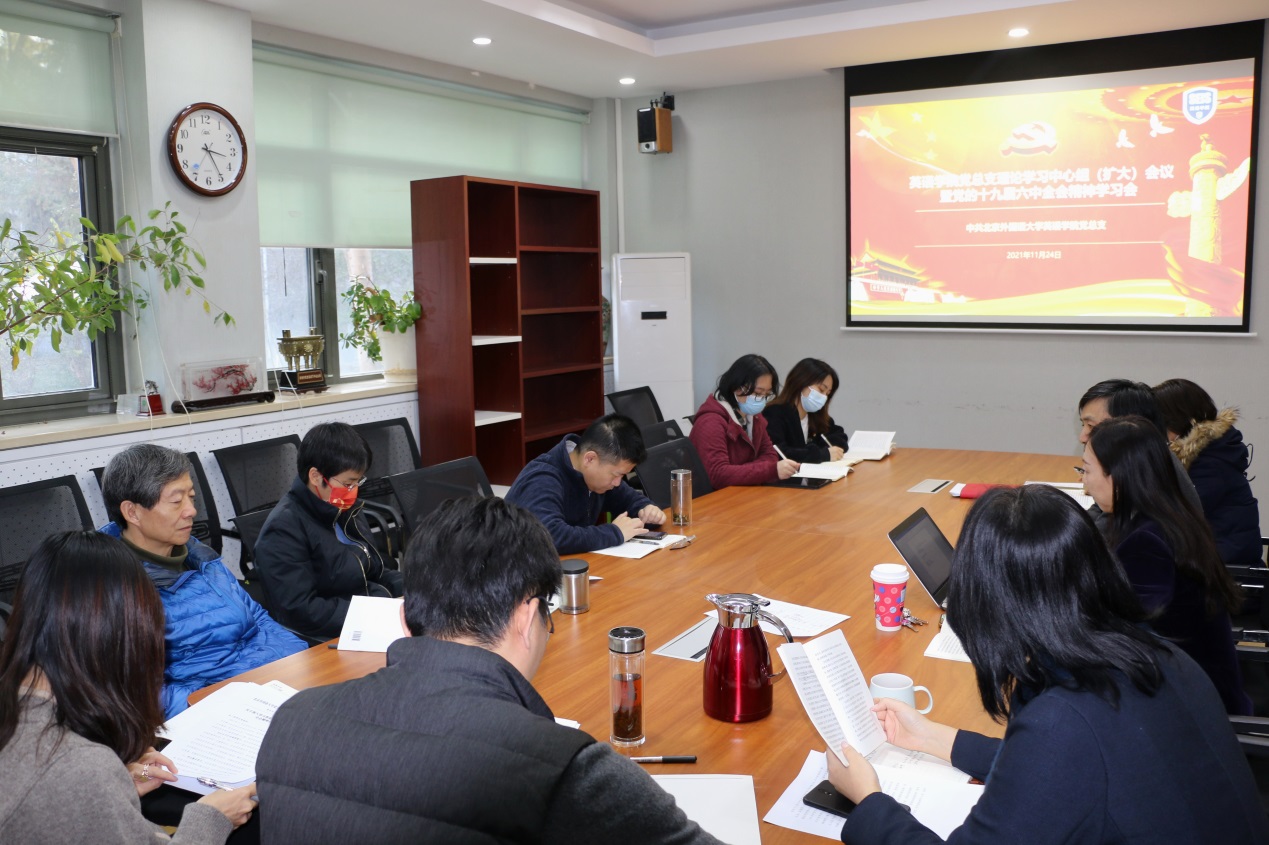 11月24日下午,pg娱乐电子游戏官网入口党总支召开理论学习中心组(扩大)会议专题学习党的十九届六中全会精神,学院党总支委员、领导班子全体成员、教工党支部书记、全体辅导员参会。会议由党总支书记王明欣主持。