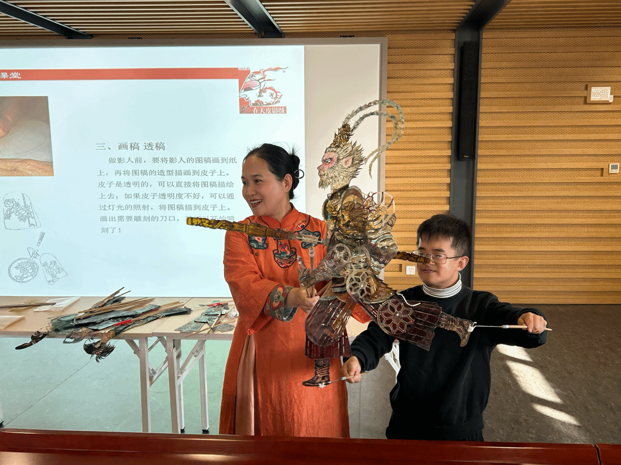 本次活动的主讲人王熙院长自2006年起致力于皮影传承,建立了龙在天残疾人皮影艺术文化中心,推动皮影艺术的发展与普及。她创作了几十部皮影作品,进入上千所校园进行演出,并通过短视频平台将皮影推广到更广泛的观众中。她还结合非遗传承和帮扶“袖珍人”贫困群体的使命,使286名“袖珍人”实现了稳定就业,为社会公益事业作出了卓越贡献。