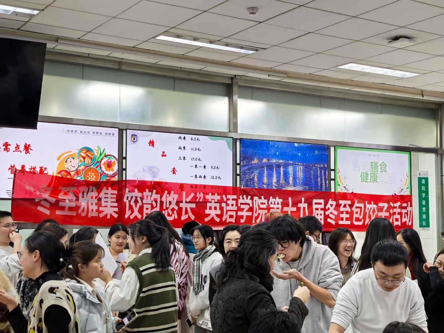 随着热气腾腾的饺子出锅,同学们围坐在一起,品尝着自己的劳动成果。热乎乎的饺子在寒冷的冬夜里格外温暖,大家边吃边聊,在欢声笑语中感受传统节日的魅力,也相互祝福着明年有一整年的好福气。