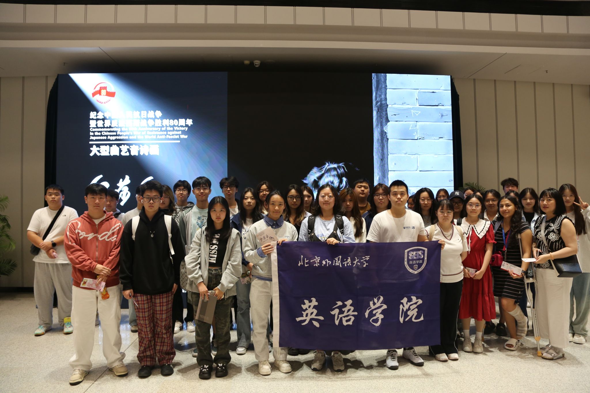 9月16日晚,为纪念中国人民抗日战争暨世界反法西斯战争胜利80周年,弘扬伟大抗战精神、致敬曾支援和帮助过中国人民抵抗侵略的国际友人,大型曲艺音诗画作品《伊莎白》在北京二七剧场隆重首演,pg娱乐电子游戏官网入口党总支组织180余名师生到场观看。