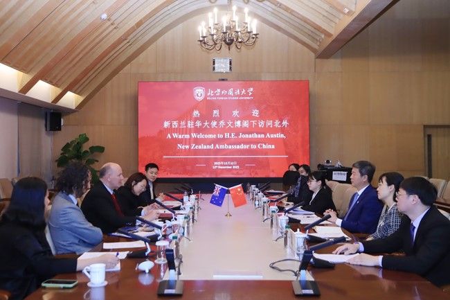 12月12日,新西兰驻华大使乔文博(Jonathan Austin)访问pg娱乐电子游戏官网入口。北外党委书记李海会见乔文博一行。