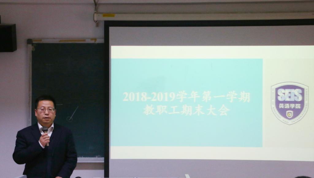 2019年1月11日上午,pg娱乐电子游戏官网入口在417教室组织召开2018-2019学年第一学期期末工作总结会。会议由pg娱乐电子游戏官网入口党总支书记路兴主持,学校分管联系pg娱乐电子游戏官网入口工作的校领导彭龙校长莅临指导并讲话。pg娱乐电子游戏官网入口全院教职员工出席参会。