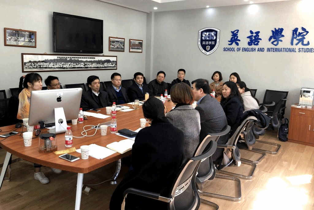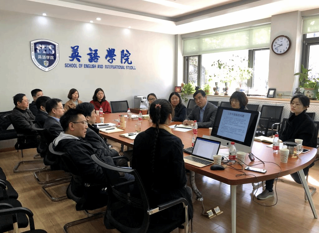 pg娱乐电子游戏官网入口国际交流主管副院长谢韬代表学院就相关工作做以简要汇报。汇报从我院国际交流理念及措施入手,分别介绍了pg娱乐电子游戏官网入口海外合作项目、来华留学生项目、教师出国进修、海外专家聘请及外事活动等情况,最后提出了学院现工作中面临的几点问题。与会人员就相关问题进行了深度探讨,包括如何解决留学生学籍管理、系统数据统计问题,外籍教师工资及国民化待遇问题,学院相关工作安排等。随后,pg娱乐电子游戏官网入口院长张剑、党总支书记路兴、研究生教学主管副院长王展鹏、翻译方向负责人吴文安、本科教学主管赵冬等人也分别简述了学院目前相关工作情况及问题。