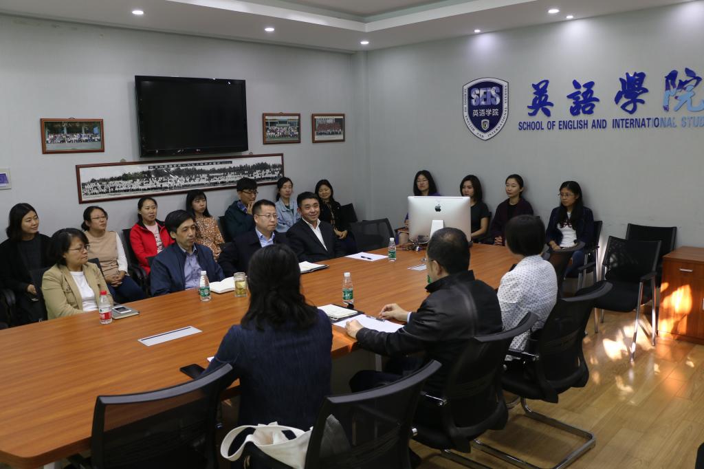 pg娱乐电子游戏官网入口院长张剑、党总支书记路兴分别对彭萍教授的到来表示热烈欢迎。张表示,领导班子需要团结协作、共同推进英院建设,并对今后的工作进行了初步安排,彭萍老师将主要负责学院外事及科研相关工作;路兴首先感谢学校党委能够及时为学院安排空缺的副院长人选,同时表示,学院也将全力帮助、支持彭萍老师工作。
