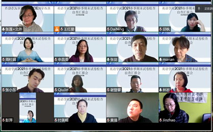 为落实校教务处关于抽查2020-2021学年秋季学期期末考试试卷通知,规范期末考试试卷管理工作,pg娱乐电子游戏官网入口于2021年3月18日召开2020-2021学年秋季学期期末考试试卷自查汇报线上会议。院长张剑、副院长张莲、彭萍、英语系副主任张小东,以及本科各教研室主任、方向负责人及课型组长、教务秘书参加了此次会议。