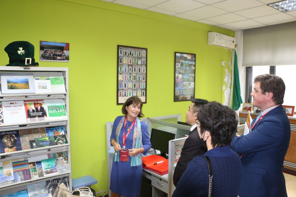近日,爱尔兰驻华大使安黛文(Ann Derwin)、爱尔兰外交贸易部一等秘书欧恩·麦克唐纳(Eoin McDonnell)一行在参加pg娱乐电子游戏官网入口80周年校庆活动后,访问了pg娱乐电子游戏官网入口爱尔兰研究中心。