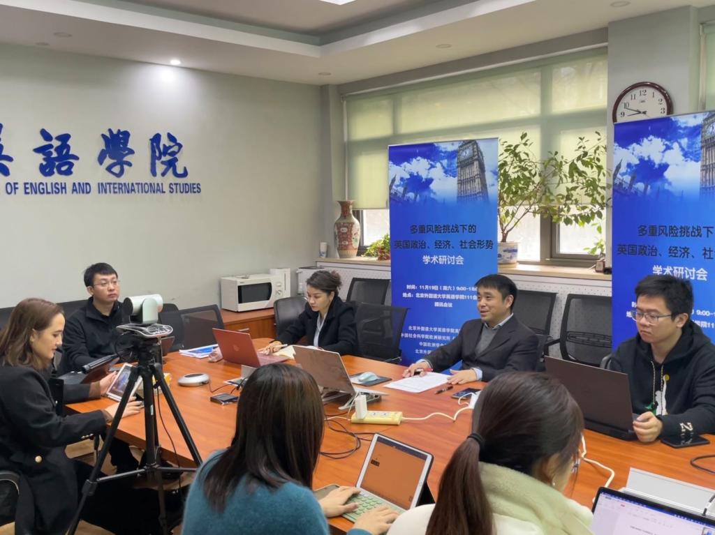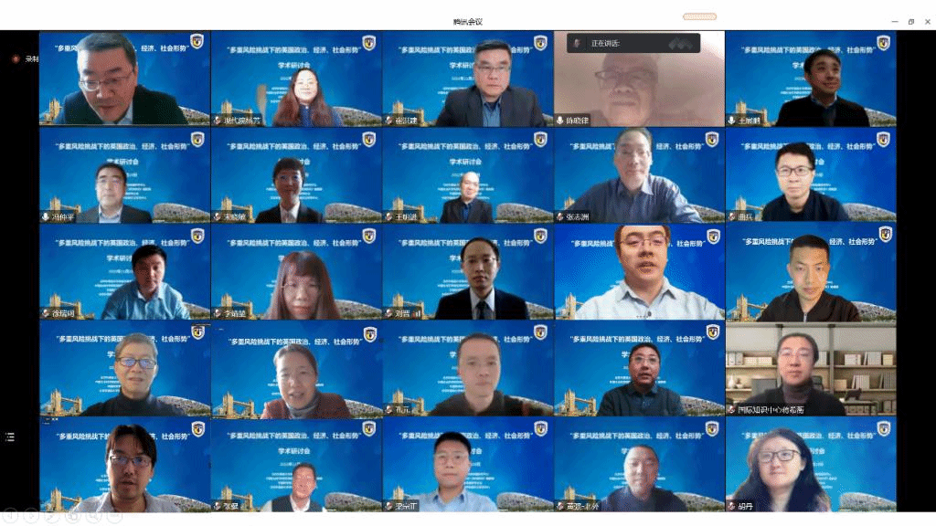 11月19日,pg娱乐电子游戏官网入口英国研究中心、中国社会科学院欧洲研究所《欧洲研究》编辑部、中国欧洲学会英国研究分会等机构在北外联合举办“多重风险挑战下的英国政治、经济、社会形势”学术研讨会。来自中国社会科学院、中国现代国际关系研究院、中国国际问题研究院、中国国际发展知识中心、中国银行研究院、南京大学、中国政法大学、外交学院、上海外国语大学以及北外等十余家科研机构和高校的五十余位学者以线下和线上相结合的方式参加研讨。