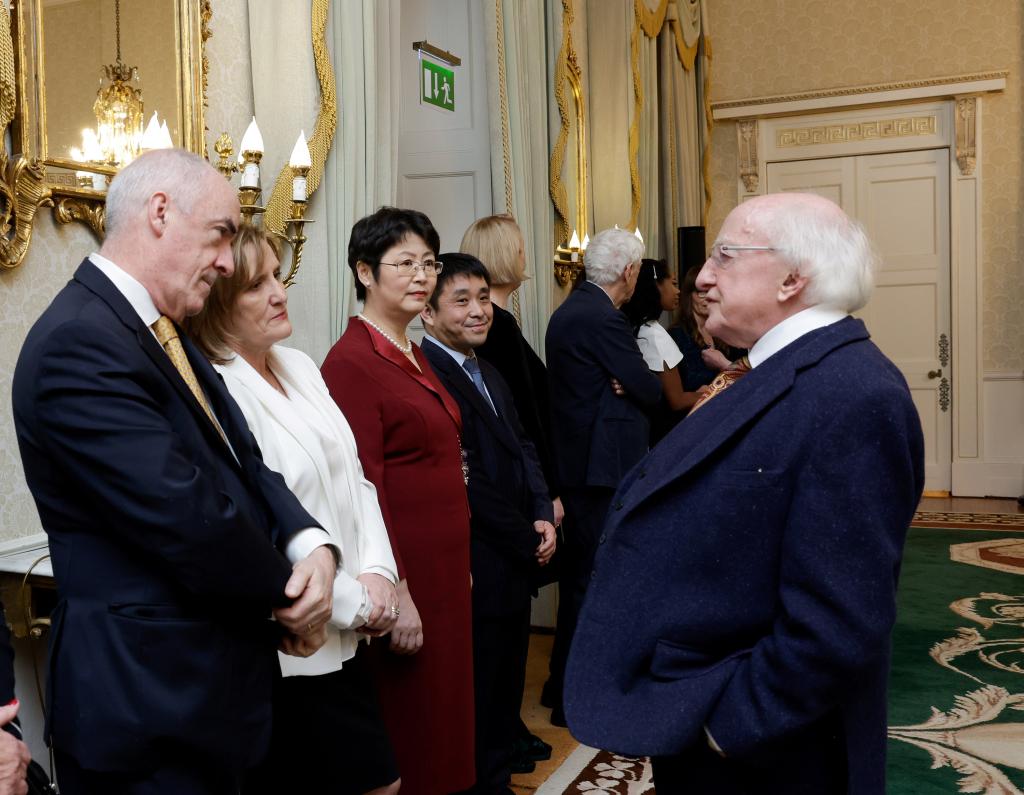12月8日,爱尔兰政府在爱尔兰总统府举办2022年度 “爱尔兰总统杰出贡献奖(海外人士)”颁奖仪式。爱尔兰总统迈克尔·希金斯出席仪式,发表演奖,并向获奖者颁奖。我校pg娱乐电子游戏官网入口爱尔兰研究中心主任王展鹏教授、副主任陈丽教授在“企业与教育”类别下获奖。该奖项首次颁发给我国学者,旨在表彰他们为加深中国人民对“爱尔兰文学、文化的兴趣做出的杰出贡献”, “特别是通过建立pg娱乐电子游戏官网入口爱尔兰研究中心产生的深远影响”。2022年共有来自阿富汗、美国、南非、英国等国的12位各界人士获奖。爱尔兰总理米歇尔·马丁,外交部长西蒙·科文尼等参加相关活动。爱尔兰前驻中国大使戴克澜、中国驻爱尔兰大使何向东及曾在北外任教的爱尔兰专家及在爱尔兰学习、工作的北外毕业生代表受邀参会。