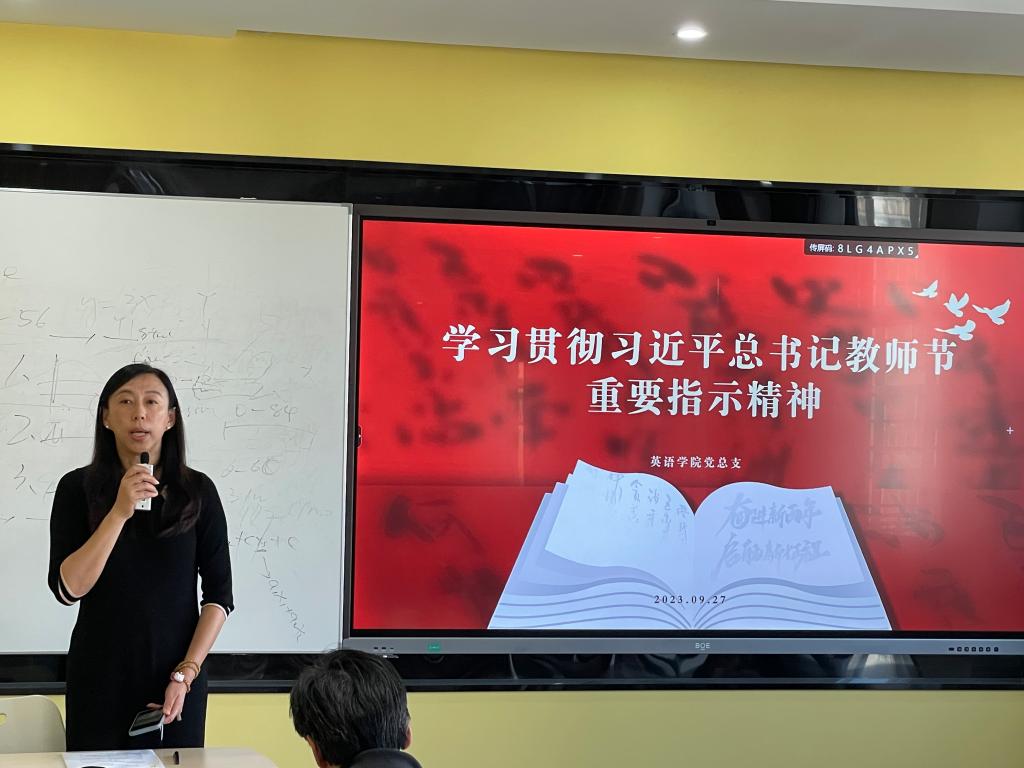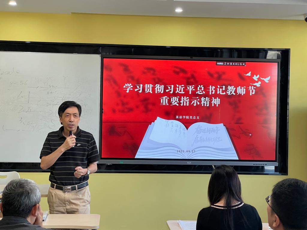 王明欣传达了习近平总书记在第三十九个教师节到来之际给全国优秀教师代表的来信精神。她指出,以教育家为榜样,大力弘扬教育家精神,为建设教育强国、实现民族复兴培养更多德才兼备的高层次外语人才,是时代赋予北外pg娱乐电子游戏官网入口的使命,更是北外英院人不断坚持的教育理念。pg娱乐电子游戏官网入口建院八十年来,先后走出了多位享誉国内外的教育家,为新中国外语教育发展做出了突出贡献。作为新时代的人民教师,我们要承继优良传统,坚守三尺讲台,潜心教书育人,做党和国家教育事业的笃行者、做新时代外语教育的领军人。