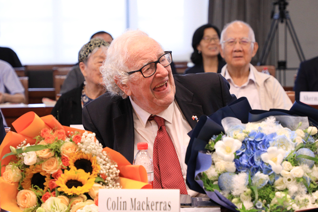 在随后的分享环节,马克林教授的朋友、同事和学生分别发言,追忆马克林教授在北外的任教经历,回顾马克林教授的学术成就以及中澳人文交流的历程,表达了对马克林教授诚挚的敬意和感谢。发言人有北外退休教授胡文仲、王家湘、杜学增和夏玉和,以及马克林教授的好友柯马凯·柯鲁克(Michael Crook)和学生代表朱雅兰等人。来自格里菲斯大学的学者王毅、丁培毅、单旭光、凯特琳·伯恩(Caitlin Bryne)、留学生Phoenix Potoi以及马克林教授的女儿和外孙也分别发言。原格里菲斯大学教授韦恩·哈德逊(Wayne Hudson)视频发言。区域与全球治理高等研究院副院长李又文主持分享会。