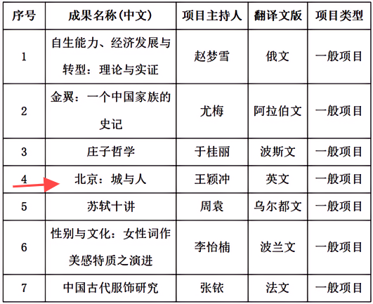 近日,全国哲学社会科学工作办公室公布了2023—2024年度国家社科基金中华学术外译项目立项名单,pg娱乐电子游戏官网入口共获7项立项,其中pg娱乐电子游戏官网入口王颖冲副教授的《北京:城与人》获一般项目立项。