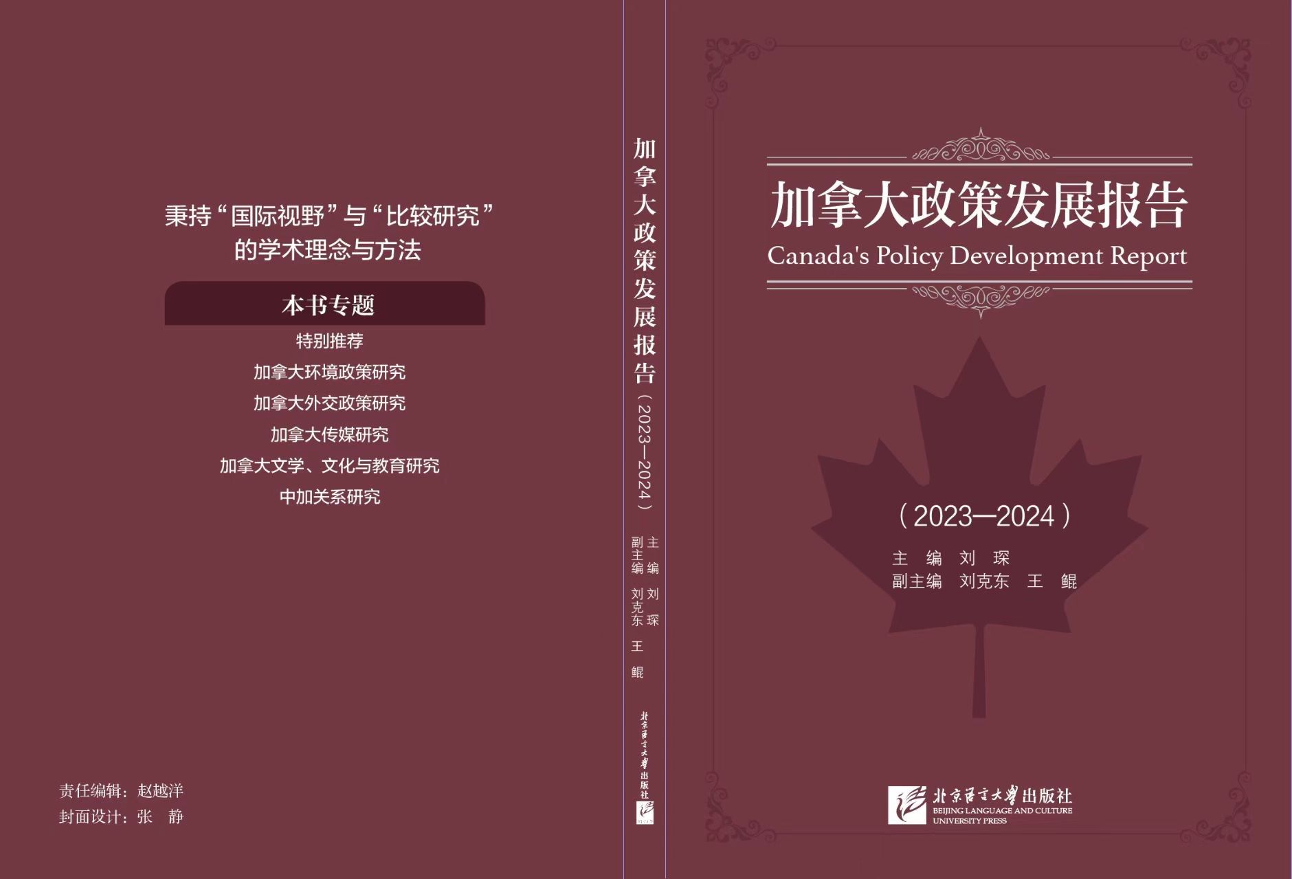自2015年以来,教育部区域和国别研究基地pg娱乐电子游戏官网入口加拿大研究中心每年出版加拿大研究的年度报告,《2023—2024年加拿大政策发展报告》是第9部。在各方共同努力下,《加拿大政策发展报告》不断取得标志性成果,扎实凝聚学术影响力。本次年度报告由加拿大研究中心主任刘琛任主编,王鲲、刘克东任副主编,由北京语言大学出版社出版。