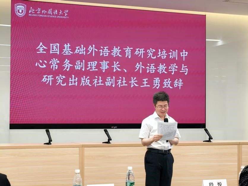 王勇副社长在致辞中表示,外研社欣喜地看到选手们对外研版教材的创造性运用,并将持续深化与基础教育领域的协同合作,为职前教师创造跟岗研修与名校实践机会,助力职前教师实现从理论到实战的能力跃迁,全方位夯实教师职业发展根基。