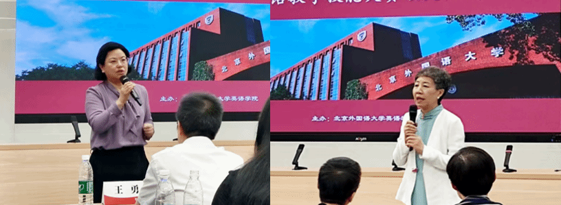 决赛分为两个会场同时进行,选手们齐聚北外,其中1名选手通过线上展示参与比赛。经过课型设计讲解、模拟授课试讲、现场问答与即时备课授课等环节的激烈角逐,2名选手荣获特等奖,4名选手荣获一等奖,4名选手荣获二等奖,6名选手荣获三等奖。各会场评委老师们高度评价了选手们的精彩表现,也指出了选手们在教学设计和教学展示方面可改进之处。