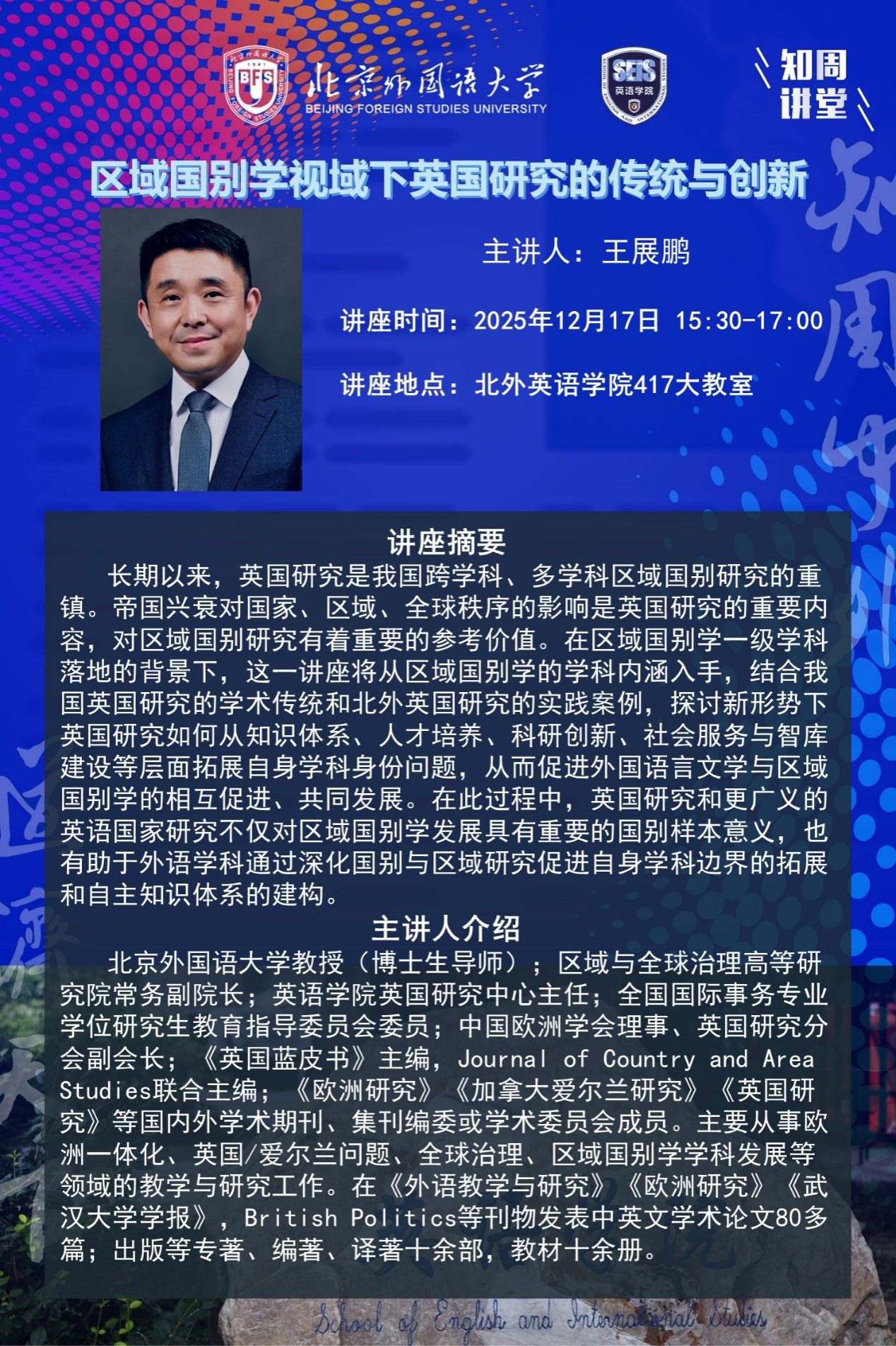 12月17日讲座:区域国别学视域下英国研究的传统与创新