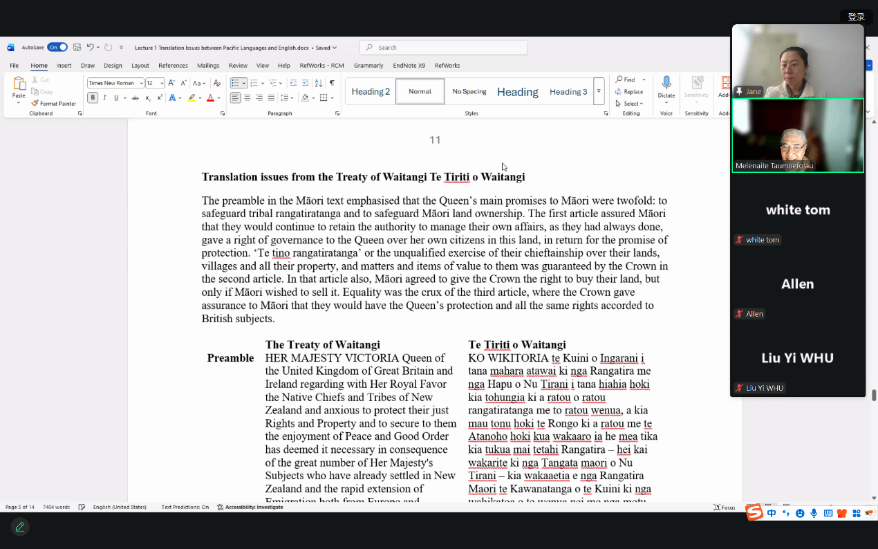 2025年11月28日下午,应pg娱乐电子游戏官网入口南太平洋语言与文化中心和世界语言博物馆邀请,汤加语外国专家梅莱奈伊特·塔乌莫艾富拉乌(Melenaite Taumoefolau)博士在线上做了题为“太平洋语言与英语之间的翻译问题”(Translation Issues between Pacific Languages and English)的讲座。讲座由pg娱乐电子游戏官网入口教师李菅主持,来自校内外多名师生参加了本场讲座。