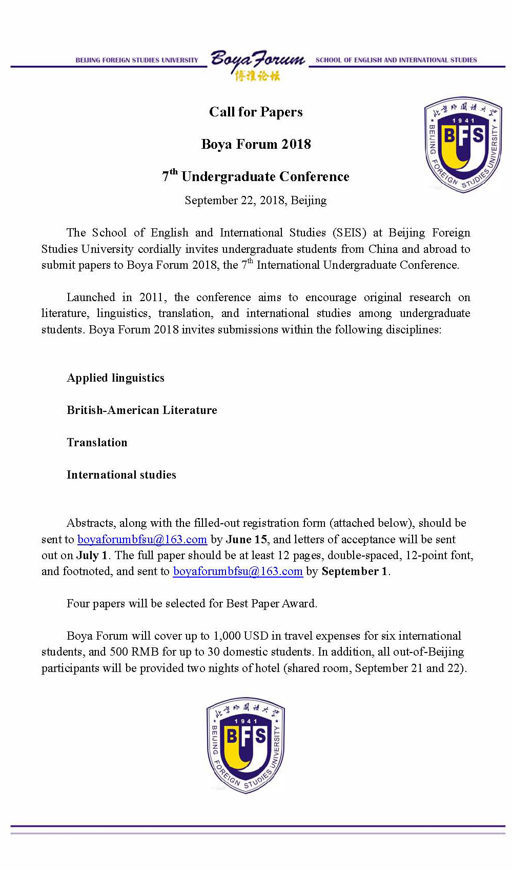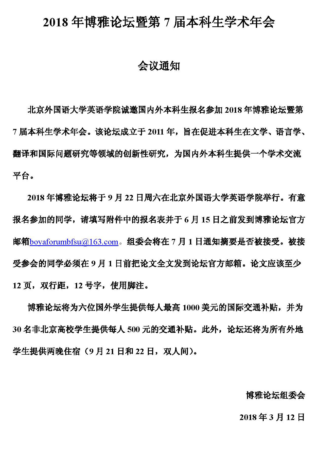 2018年博雅论坛暨第7届本科生学术年会通知(至6月15日)