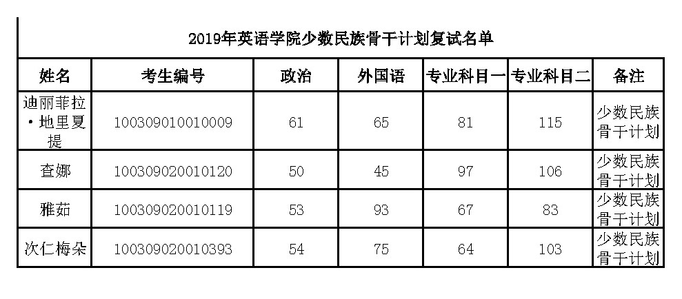 2019年pg娱乐电子游戏官网入口少数民族骨干计划复试名单公示