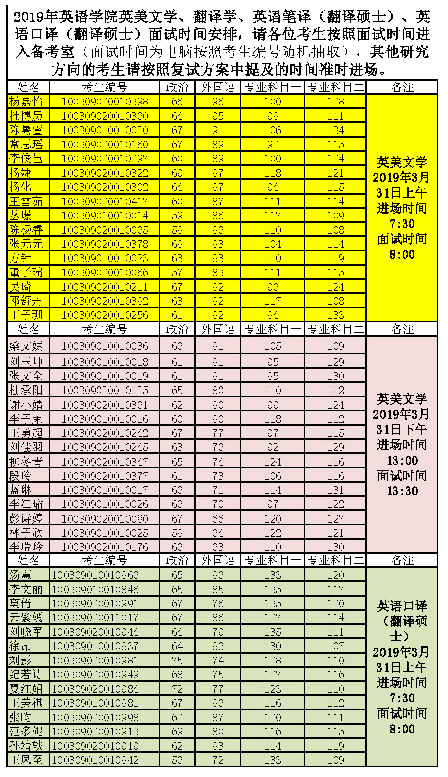 2019年pg娱乐电子游戏官网入口英美文学、翻译学、英语笔译(翻译硕士)、英语口译(翻译硕士)面试时间安排