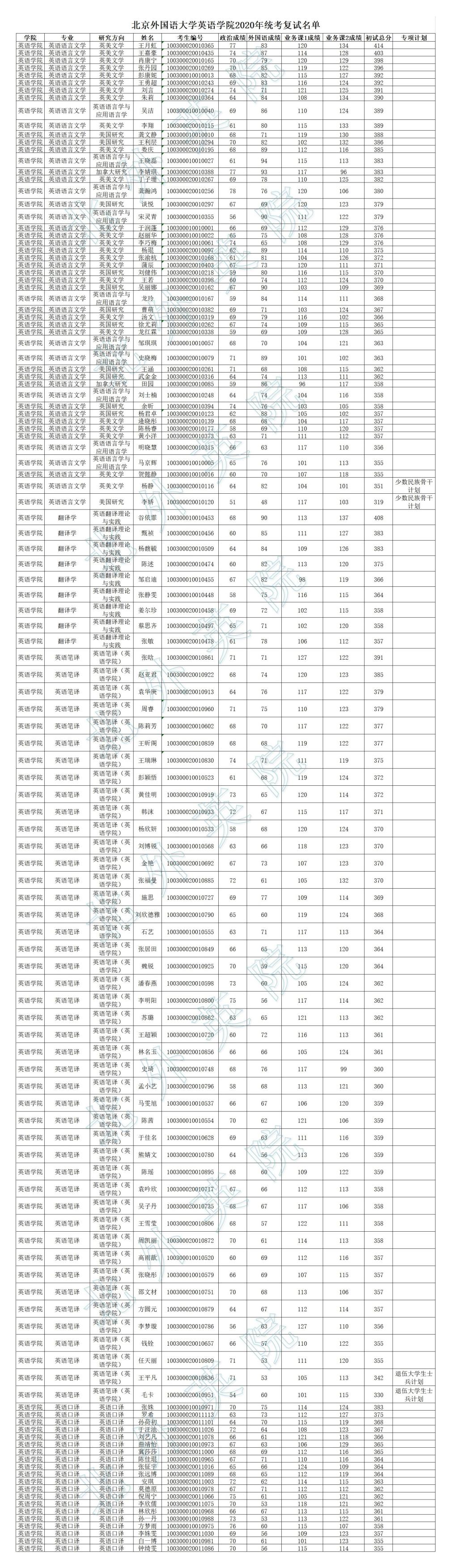 pg娱乐电子游戏官网入口2020年研究生统考复试名单