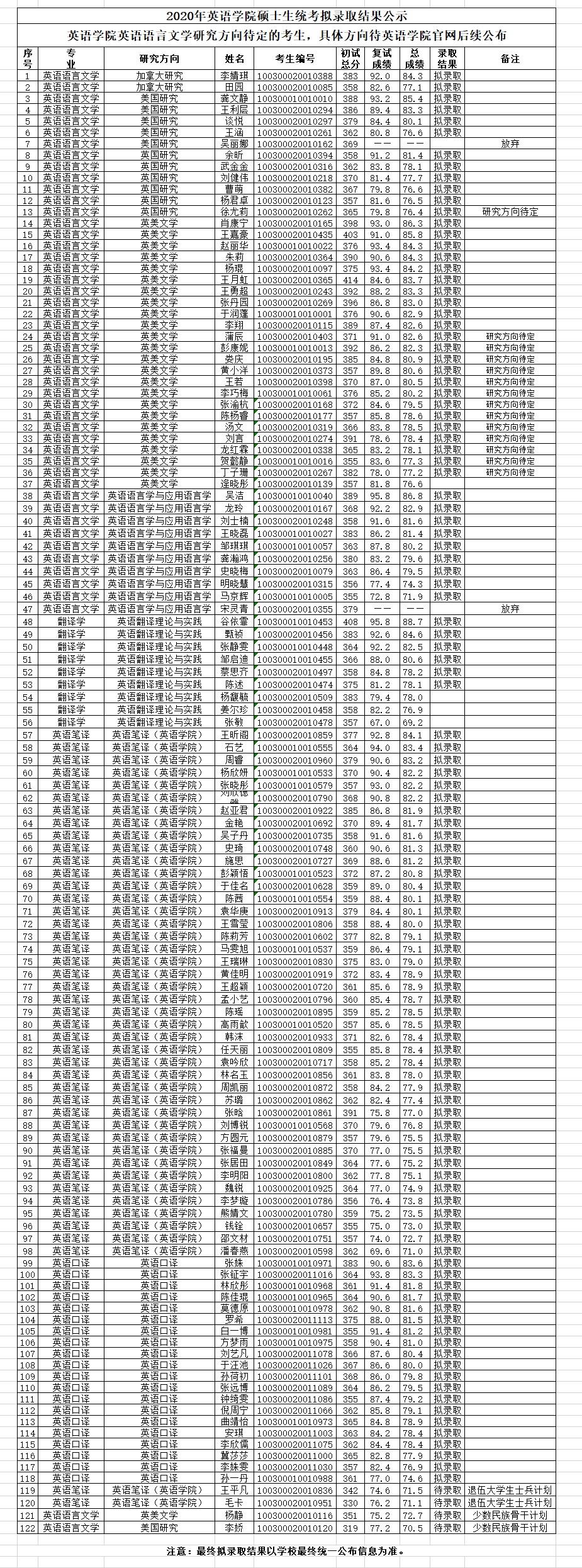 2020年pg娱乐电子游戏官网入口硕士生统考拟录取结果公示