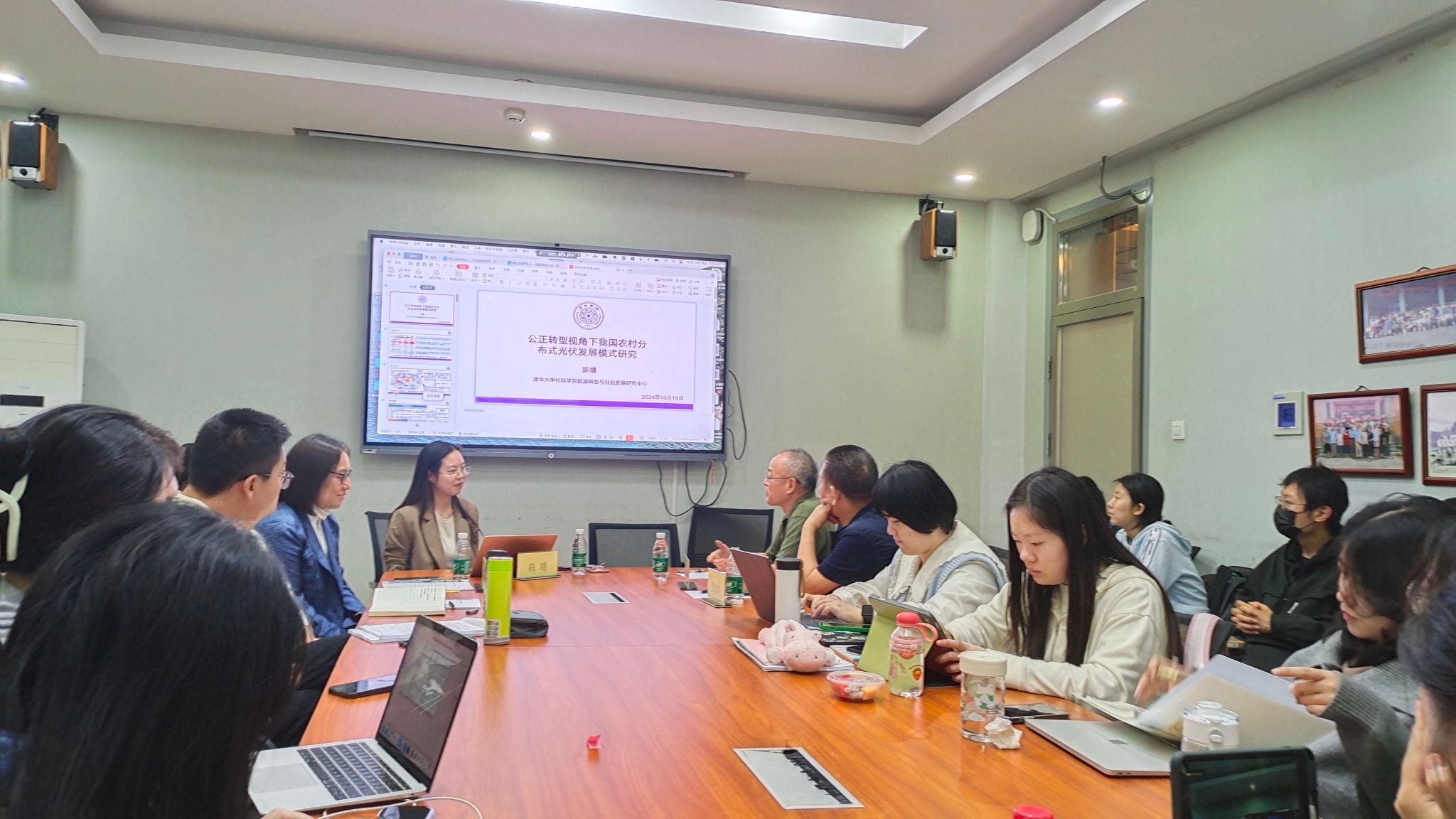 问答环节中,同学们积极提问。加研中心的胡同学询问西北地区分布式光伏多余电力能否用于“西电东送”,陈博士回应称,若技术改进,未来可作为“西电东送”的新型发电形式。国际关系学院的同学提到庄上村案例的国际推广情况,陈博士表示该案例受到联合国关注,得益于详尽的整村规划和资金投入。此外,加研中心的李同学询问光伏发电在建设美丽中国方面的潜力,陈博士提到已有类似实践,如“光伏+渔业”。