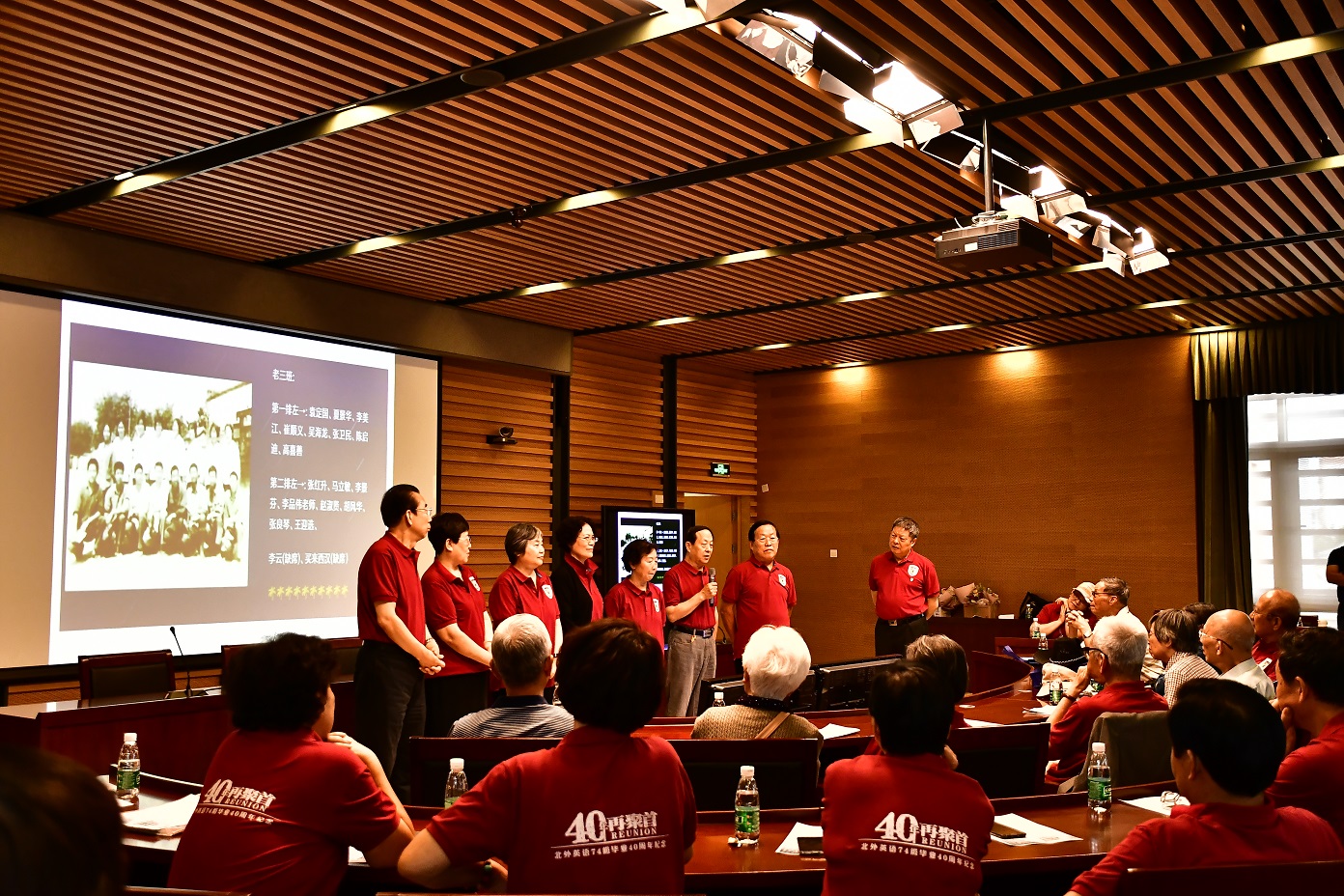 9月15日,pg娱乐电子游戏官网入口77周年校庆之际,pg娱乐电子游戏官网入口迎来了部分校友返校。其中最大规模的pg娱乐电子游戏官网入口1974级校友毕业40周年纪念活动在图书馆五层学术报告厅举行,来自全国和世界各地的近80位校友和10多位昔日恩师齐聚一堂,共同追忆往日的校园生活。pg娱乐电子游戏官网入口校友会会长,原党委书记杨学义、pg娱乐电子游戏官网入口院长张剑、pg娱乐电子游戏官网入口党总支书记路兴出席此次活动。活动由校友代表吴天鹏主持。