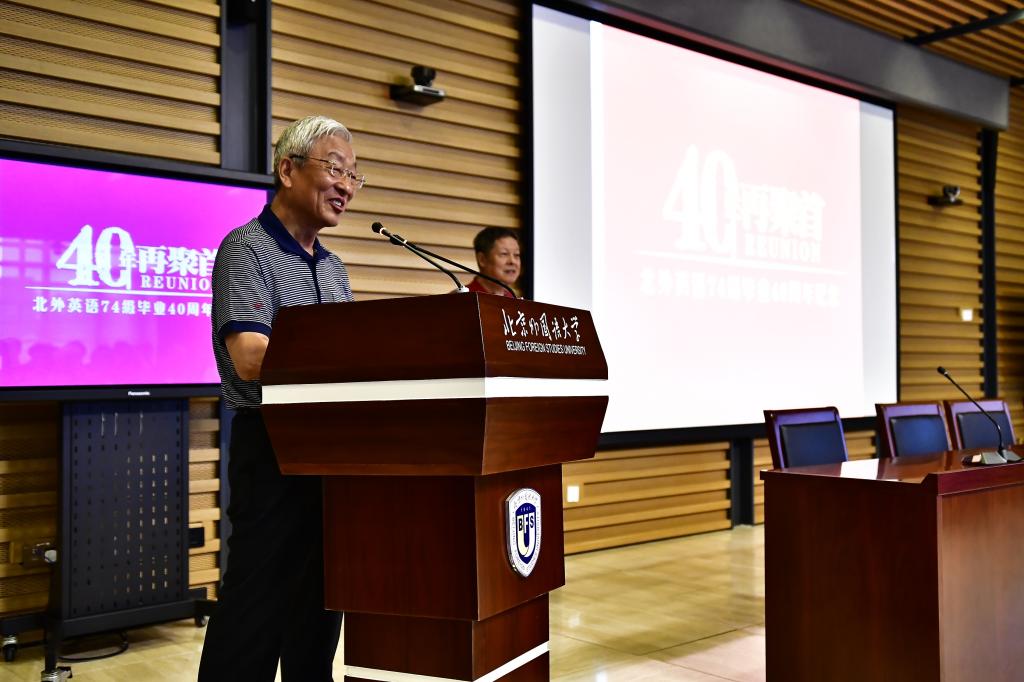 杜学增教授作为教师代表发言,回忆了校友们在校时的情况,表示再次相聚感慨颇多,激动万分。主持人吴天鹏校友感谢母校和老师们对于同学们无私的培养和谆谆教诲。