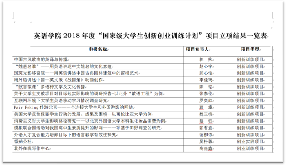 ——2018年“国家级大学生创新创业训练计划”立项评审工作已经结束,我院共申请19个项目,获批14个项目。其中创新训练项目13个,创新实践项目1个。分别是:郭煦、赵心宇、顾心怡、李佳琦、陈铭、张泰伦、罗奕欣、蒋幸、魏玉槐、蔡钰、张君宜、范柳依、吴松蓉、高垚鑫。具体情况如下。