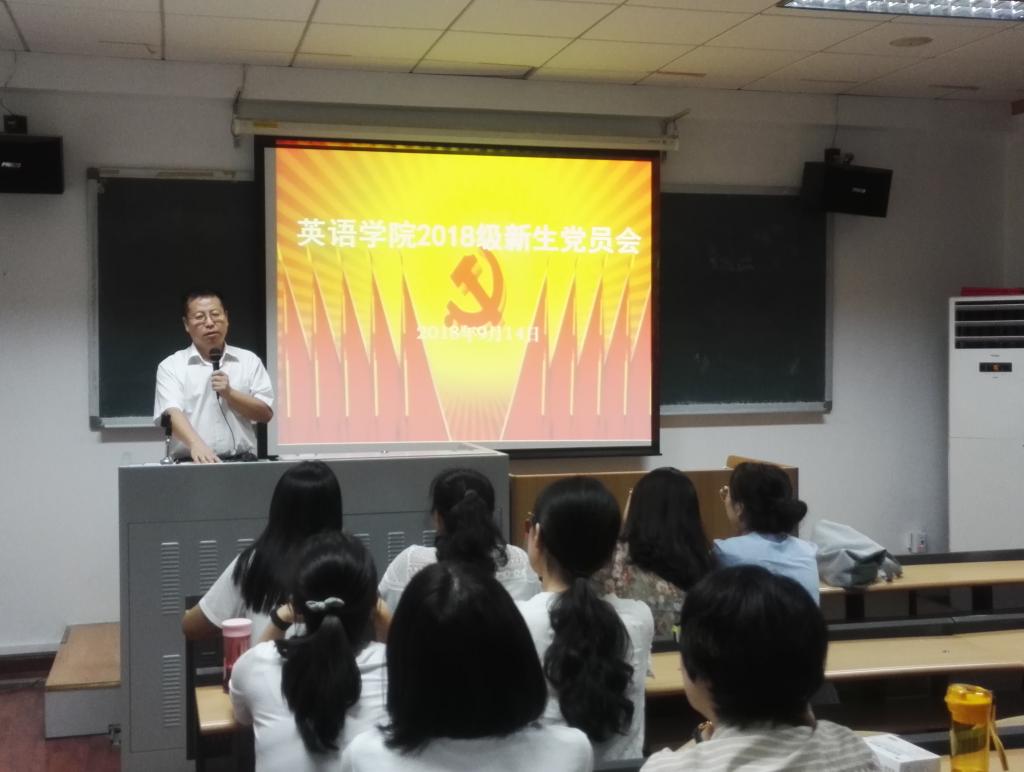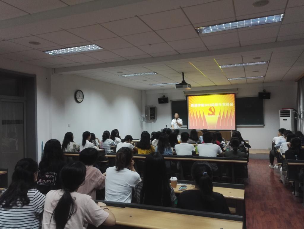 2018年9月14日晚7点,在pg娱乐电子游戏官网入口417教室,pg娱乐电子游戏官网入口党总支召开2018级研究生新生党员大会。大会由党总支书记路兴主持,2018级研究生辅导员于承杰老师、研究生各党支部书记及2018级研究生党员参加。