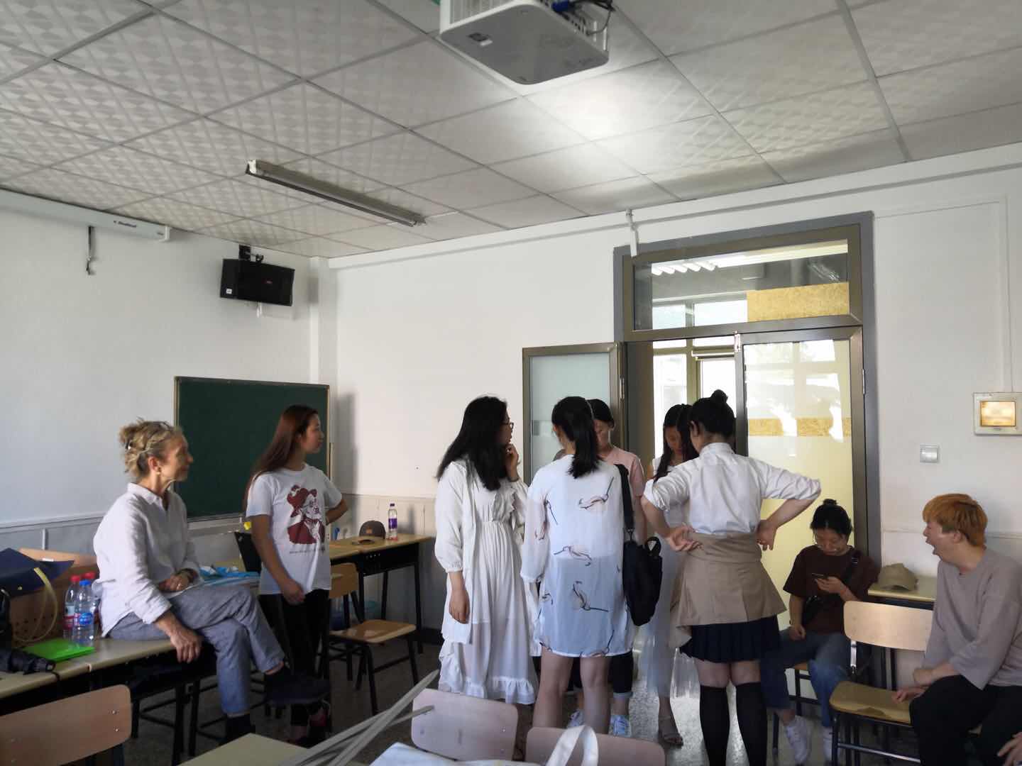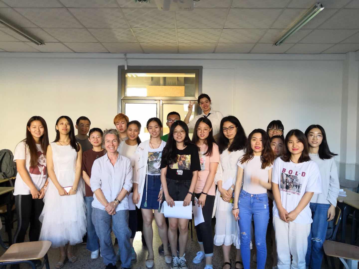赛芙博士目前为爱尔兰三一学院戏剧系助理教授兼爱尔兰SJ戏剧公司艺术总监。她致力于爱尔兰经典戏剧的发展与传播,在戏剧教学、研究与导演方面都具有丰富的经验。在第一期工作坊中,我院1806班本科生刘畅、陈翎雨、陈琼洁、罗筱晓、王倩茜、林启和、陈云龙、马竞怡、陈姝颖、李明越、李越、蒋枫奕、成佩雯、陈邵逐颜、赵偲琪、杨一凡、曹韫珠、骆砚秋、王赫璘、李越、陈禹含、高玉洁为赛芙博士表演了他们根据亚瑟王传奇改编的英文短剧“The Split of the Round Table”(《圆桌骑士的分裂》),他们的生动演绎和丰富的想象力得到了赛芙博士的高度评价,同时她也为剧组同学提出了不少宝贵建议,使同学们了解了使用言语来呈现肢体暴力,以此增强短剧戏剧性的有效办法。
