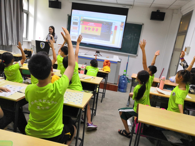随后翻译学党支部党员带领孩子们参观了北外校园,感受校园环境,培养孩子们对高等学府的向往。随着中国文化“走出去”,英语能力对一代代追梦人来说越来越重要。为此,党支部志愿者为孩子们准备了特色英语课堂并带领营员们排练英文短剧。这一活动既发挥了翻译学党支部的语言优势,也提高了后勤职工子女学习英语的兴趣。