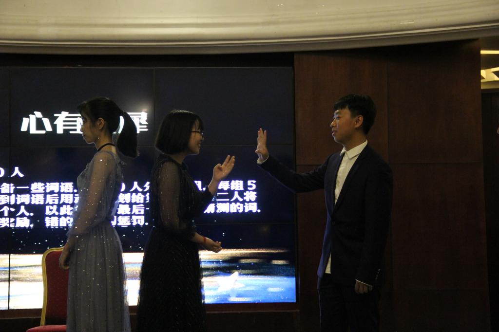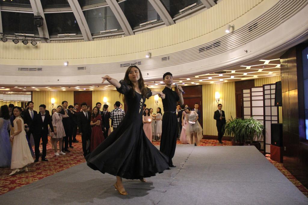 舞会由北京大学街舞社的表演震撼开场,律动的音乐点燃了全场的热烈氛围。舞池中同学们愉快地和舞伴交谈,对彼此有了初步的认识和了解。紧接着,来自北京大学国标队的舞蹈培训老师现场对大家进行华尔兹舞蹈教学。刚刚初识的男女同学在舞培老师的指导下随着音乐在舞池中摇曳,沉醉于优美的华尔兹之中。中场休息时,北外pg娱乐电子游戏官网入口艺术团给大家带来热舞《Uh-oh》,其后开展了激动人心的抽奖环节。除了共舞华尔兹,同学们还在主持人的组织下积极参与了互动小游戏“心有灵犀”和“泡泡糖”,与舞伴默契十足。两段古典乐后,北京师范大学的学子登台,给大家带来了一首热烈的说唱《很高兴认识你》,紧接着的第二轮抽奖更是让现场的气氛达到另一个高潮。