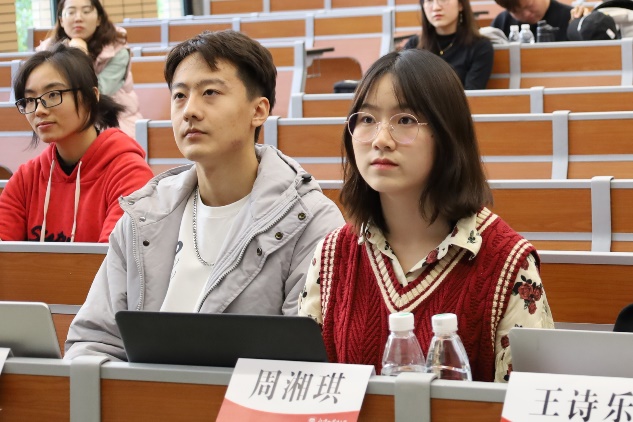 赛场上,选手们一展歌喉,表现出别样风采。他们将自己的情感注入音乐之中,用旋律展示音乐的无限魅力,用声音演绎藏于歌曲中的故事。选手们的演唱曲目风格多样,既有《我爱你塞北的雪》这样悠扬婉转的民歌,又有《Rolling In The Deep》这样热烈而富有韵律的流行曲目。来自20级5班的本科生温乃权以一曲真挚感人的《阿楚姑娘》给观众留下深刻印象;同样,来自19级4班程舒夏的《Bound To You》以饱满的情绪和高超的处理技巧,也收获了在场所有人的欢呼与惊叹。选手们杰出的表现引得听众频频鼓掌赞叹,获得了在场评委老师的一致肯定。