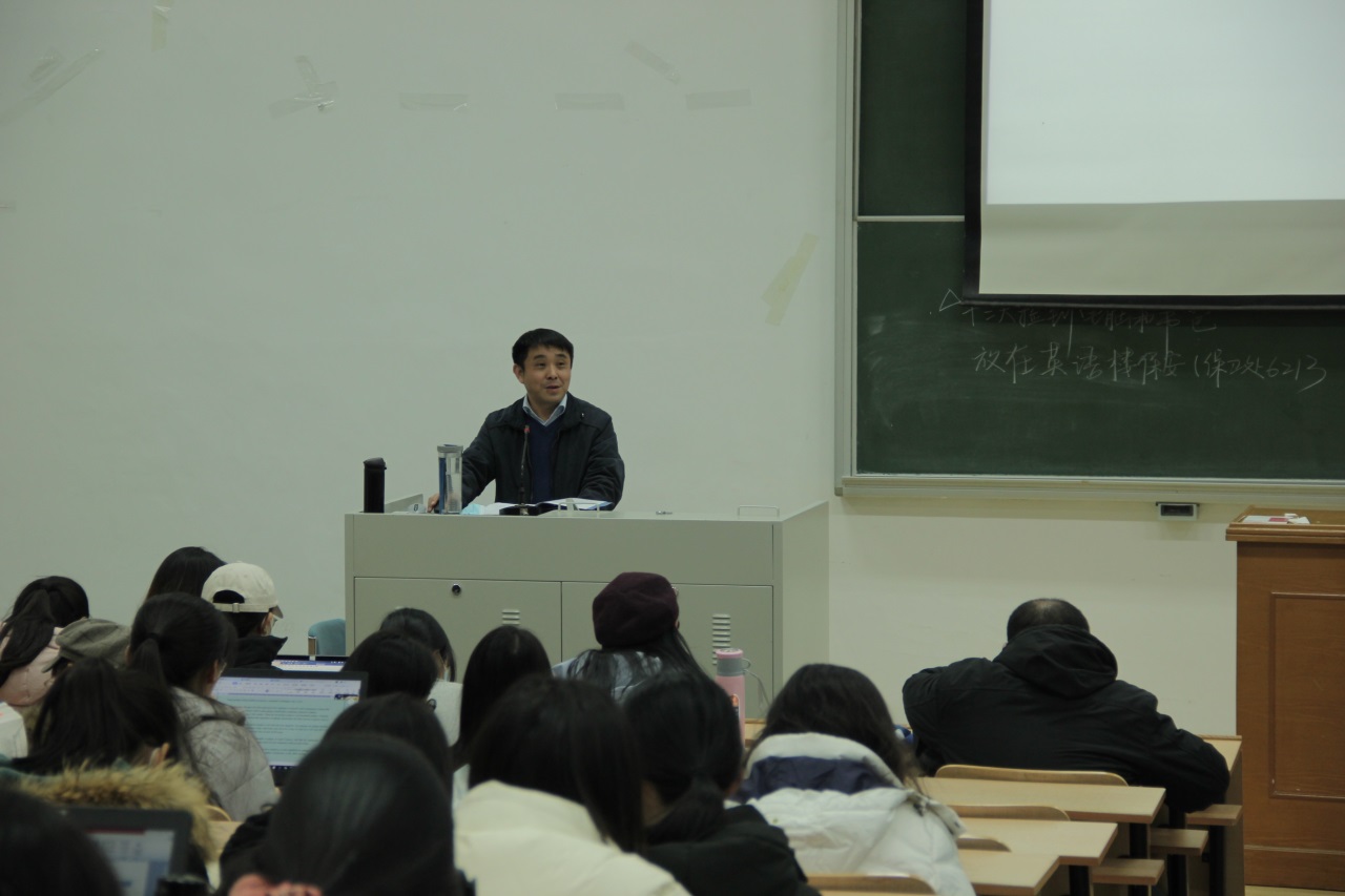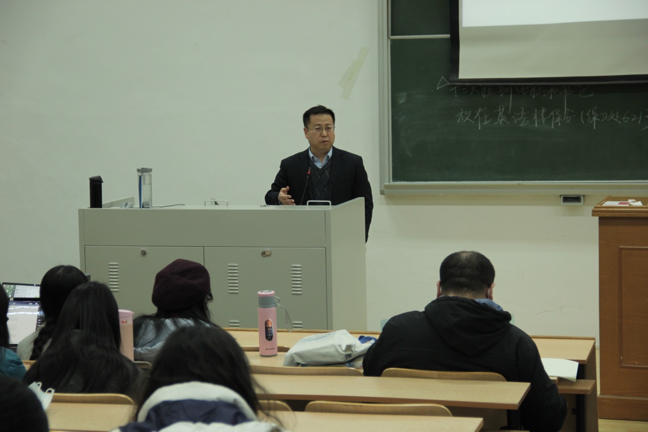 随后,党总支书记路兴老师在讲话中 鼓励同学们结合自己的专业方向和研究兴趣,广泛阅读专业书籍和相关论文,提早规划论文方向。平时要 注意积累,可以练习写一些学术文章,也可以专心翻译一本经典著作,不断提升专业水平。他建议同学们利用好观摩学长学姐论文开题和论文答辩的机会,并多与导师交流,汲取有益经验。路老师还提示大家注意劳逸结合,保证充足睡眠;合理安排个人时间,提高学习效率;重视自我情绪的管理,遇到困难及时寻求老师、朋友、家人的帮助。最后,路老师向同学们表达期许,祝愿大家踏实走好自己选择的路,不负韶华。