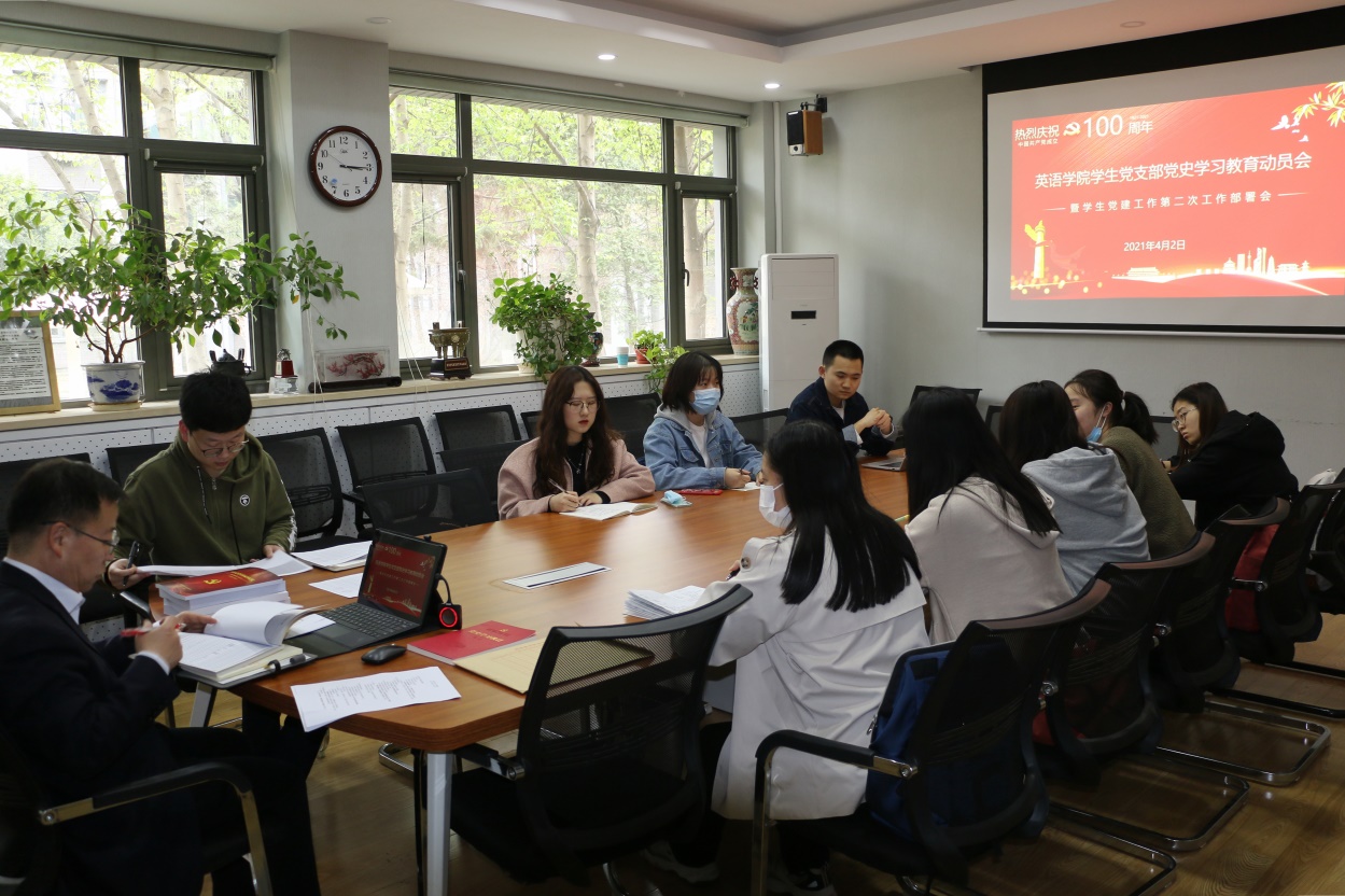 2021年4月2日下午,pg娱乐电子游戏官网入口党总支在111会议室召开学生党支部党史学习教育动员会暨本学期学生党建第二次工作部署会。党总支书记路兴主持本次会议,辅导员宗辰及各学生党支部书记参加会议。