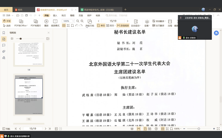 本次分团会议进一步明晰了本次学生代表大会的流程,明晓了提案撰写的要求,明确了学生代表的职责,为即将召开的第二十一次学生代表大会打下了坚实基础。今后,pg娱乐电子游戏官网入口学生代表团将竭力传达北外学生诉求,助力建设更美北外校园!