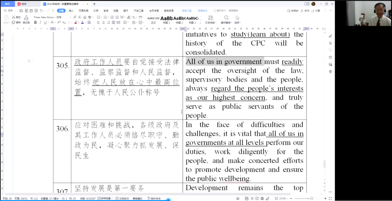 2022年4月27日,中国驻新西兰等国前大使、外交部英文定稿专家、中国翻译协会常务副会长陈明明应pg娱乐电子游戏官网入口翻译研究中心邀请,为pg娱乐电子游戏官网入口师生举办了题为“政府工作报告重要表述翻译解析”的线上讲座。 讲座由pg娱乐电子游戏官网入口副院长、翻译系主任彭萍教授主持。