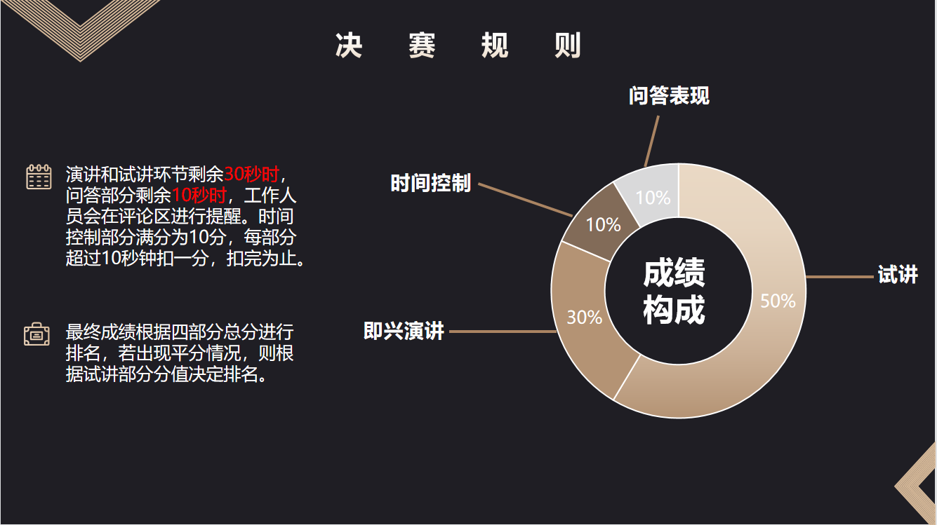 决赛分为三个环节:3分钟即兴演讲、10分钟试讲、3分钟自由问答,7名决赛选手结合自己的专业所长与对课文的理解进行试讲。即兴演讲环节,选手们从自己抽选的题目出发,动之以情,晓之以理,为评委和观众们提供精彩纷呈的独到见解;试讲环节,大家从不同角度展开教学:或根据具体内容文本分析,或详细讲解语篇逻辑结构,或进行先导教学,或根据内容分析解题思路等等,每位选手的表现都精彩纷呈,让观众大开眼界。