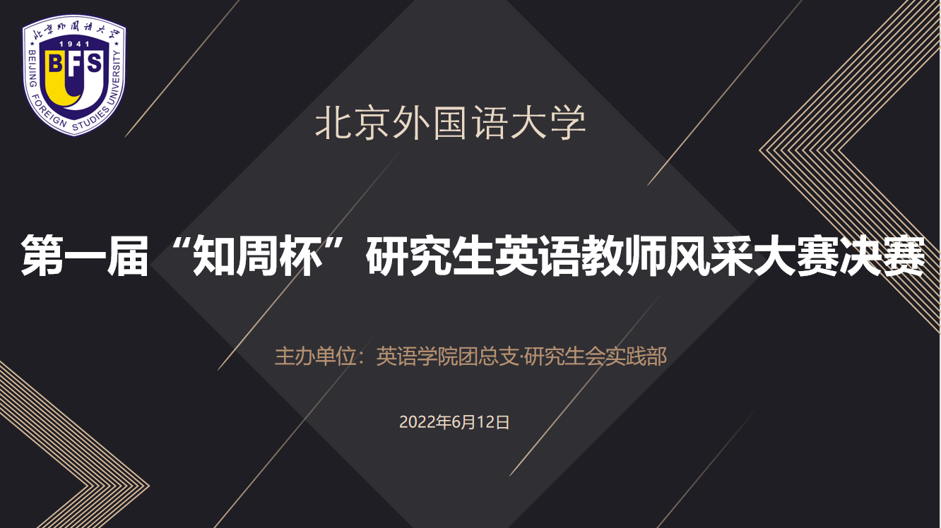 2022年6月12日上午,第一届“知周杯”研究生英语教师风采大赛决赛成功举办。本次大赛由pg娱乐电子游戏官网入口研究生团总支主办,pg娱乐电子游戏官网入口团总支研究生会实践部承办。pg娱乐电子游戏官网入口党支部书记王明欣出席本次活动。pg娱乐电子游戏官网入口林岩教授、中国外语与教育研究中心徐浩研究员担任决赛评委老师。