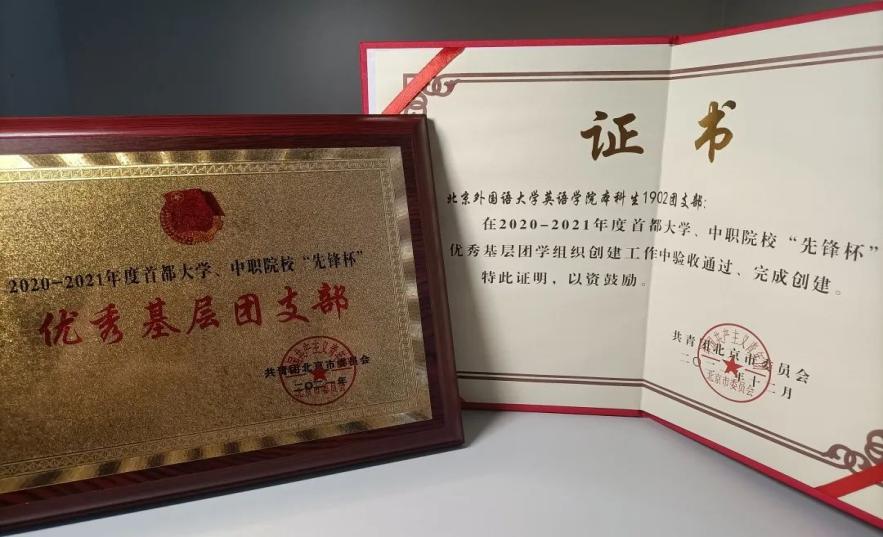 pg娱乐电子游戏官网入口本科生1902团支部获评2020-2021年度首都大学、中职院校“先锋杯”优秀基层团支部